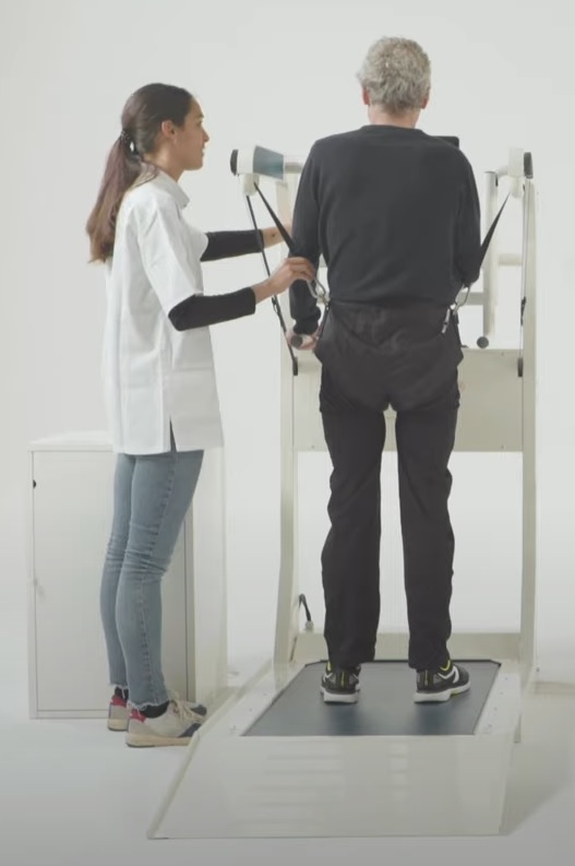 cinta de andar, analizar el paso, realizar ejercicios de equilibrio con juegos,